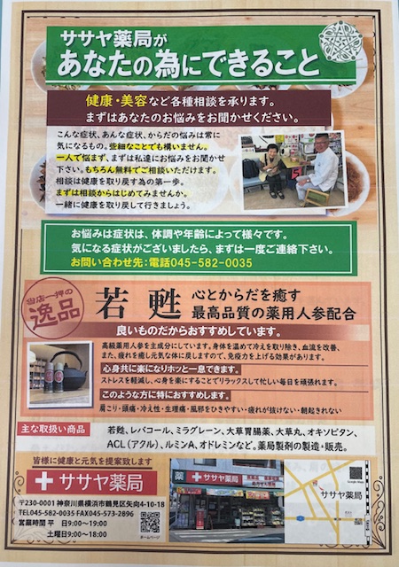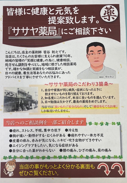 ササヤ薬局をご愛顧いただきありがとうございます。当店のお得な情報や季節に合わせた情報をお届けします。